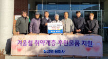 2025년을 마감하는 2025년 12월 31일 괴산의 사회단체와 사찰에서 주변의 어려운 이웃들과 함께했다. 한국자유총연맹 괴산군지회(지회장 송석규)가 이날 지역 내 어려운 이웃들에게 도움이 되길 바라며 파우치국, 컵라면 등 100만 원 상당의 식료품을 괴산읍 행정복지센..