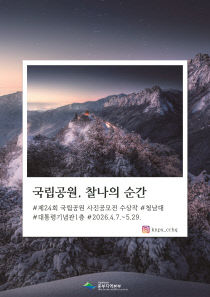 국립공원공단 중부지역본부(본부장 서영교)는 청남대 대통령기념관 1층에서 7일부터 5월 29일까지 국립공원 사진전시회를 개최한다. 이번 전시회는 '국립공원, 찰나의 순간'이라는 주제로 제24회 국립공원 사진공모전 수상작들이 전시되며 설악산의 새하얀 설경과 울창한 월악산의..