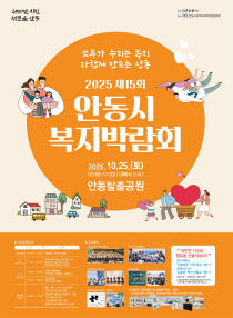 경북 안동시는 오는 25일 안동탈춤공원에서 2025년 제15회 안동시 복지박람회를 개최한다. 시민이 직접 참여해 선정한 슬로건 '모두가 누리는 복지 다함께 만드는 안동' 아래 지역 복지의 현재와 미래를 함께 그리는 시민 참여형 축제로 열린다. 본 행사에서는 △복지유공자..