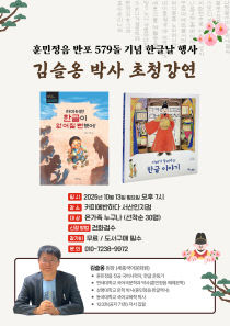 한글의 우수성과 소중함을 되새기는 '훈민정음 반포 579돌 기념 한글날 행사'가 10월 13일 오후 7시 충남 서산시 인지면에 잇는 '커피에 반하다' 서산 인지점에서 열린다. 이번 행사는 세종국어문화원 김슬옹 원장(국어사학자·한글운동가)을 초청해 진행된다. 김 원장은..