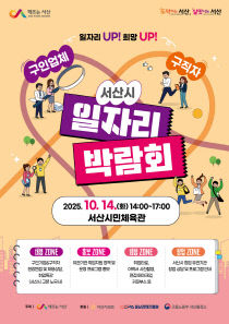 서산시는 오는 10월 14일 서산시민체육관에서 지역 구직자와 기업을 연결하기 위한 '2025 서산시 일자리박람회'를 연다고 9일 밝혔다. 이번 박람회는 서산시가 주최하고 서산시일자리종합센터가 주관하며, 취업을 준비하는 시민은 물론 새로운 일자리를 찾거나 창업에 관심 있..