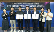 전북 전주시와 (재)전주정보문화산업진흥원(원장 허전, 이하 진흥원), 국내 최대 영화음향 전문기업인 라이브톤이 19일 시청 3층 회의실에서 우범기 전주시장과 허전 진흥원장, 최태영 대표 등이 참석한 가운데 '한국형 영화 효과음원 플랫폼(케이사운드 라이브러리) 서비스 확..