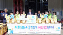 농협서산시지부(지부장 송연광)는 2일 서산농협 미곡종합처리장에서 관내 농협 임직원과 농가주부모임 서산시연합회(회장 권금숙) 회원들이 함께하는 추석맞이「사랑의 쌀 나눔행사」를 열었다. 이번 행사는 농협의 '농심천심(農心天心) 운동'의 일환으로 추진됐다. 이날 행사에는 이..