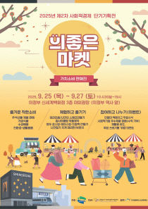 2025-09-22 의정부시, 2025년 제2차 사회적경제 기획전 ‘의좋은마켓’ 개최 의정부시(시장 김동근)는 9월 25일부터 27일까지 3일간 신세계백화점 의정부점 야외광장 3층에서 2025년 제2차 사회적경제 단기기획전 '의좋은마켓'을 개최해 사회적경제기업의 판로 확대와 지역경제 활성화에 나선다. 이번 기획전은 사회적경제기업의 다양한 제품을 시민들에..