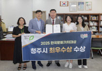 2025-09-16 청주시, 2025 한국문화가치대상 최우수상 수상 청주시는 문화체육관광부 허가 사단법인 한국문화가치연구협회가 주관한 '2025년 한국문화가치대상'에서 최우수상을 수상했다고 16일 밝혔다. 올해 6회째를 맞는 한국문화가치대상은 전국 지방자치단체와 지역 문화재단을 대상으로 특색있는 문화·예술 정책과 사업 등을 평가해 지역..