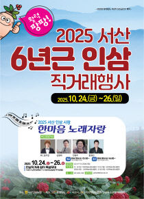 충남 서산시는 오는 24일부터 26일까지 3일간 서산시 남부순환로 11번지 소재 서산인삼유통센터에서 '서산6년근 인삼 직거래 행사'를 개최한다고 밝혔다. 서산6년근 인삼은 조직이 충실하고 향이 진하며, 유효 사포닌 함량이 높아 전국 최고 수준의 품질을 자랑한다. 가을철..