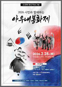 천안시가 28일 사적관리소 광장 및 아우내장터 일원에서 3.1운동 제107주년 기념 '2026 아우내봉화제'를 개최한다고 밝혔다. 이날 사적관리소 광장에서 오전 10시~오후 3시까지 대형 태극기 만들기, 바람개비 태극기 거리 만들기 등 다양한 시민 참여 행사가 진행되고..