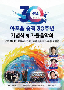 2025-10-11 김천시 ‘아포읍 승격 30주년’ 기념행사 김천시의 유일한 읍인 아포읍이 올해로 읍 승격 30주년(10월 18일)을 맞아 기념행사를 열고 읍민과 소통하는 화합의 공동체를 다짐했다. 아포읍은 경부선 철도와 경부·중부내륙 고속도로가 관통하는 교통물류의 중심지로 산업과, 농업, 도시기능이 공존하는 김천시 동부 관문으..