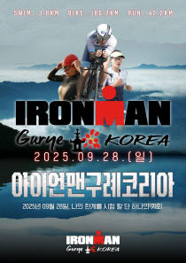 대한철인3종협회가 주최하고 전라남도, 구례군, 대한체육회가 후원하는 2025 아이언맨 구례 코리아 대회(2025 IRONMAN GURYE KOREA)가 9월 26일부터 29일까지 4일간 구례군 일대에서 개최된다. 올해 대회는 전 세계 31개국에서 1,000여 명의 선수..