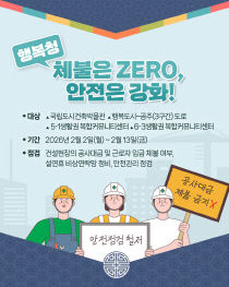 행정중심복합도시건설청은 설 명절을 맞아 건설 현장의 공사 대금 및 근로자 임금 체불 여부 확인과 함께 현장 안전관리 강화를 위한 점검에 나선다고 2일 밝혔다. 이번 점검은 오는 13일까지 ▲국립도시건축박물관 ▲행복도시~공주(3구간) 도로 ▲5-1생활권 복합커뮤니티센터..