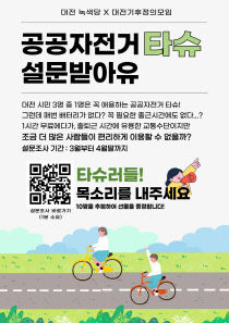 대전기후정의모임과 대전녹색당은 3월 9일부터 4월 말까지, 공공자전거 타슈 보급 확대를 목표로 시민 설문조사를 진행하고 있다. 6월 3일 지방선거를 앞두고 친환경 공공 교통을 강화하라는 시민들의 의견을 확인하고 정당과 후보들에게 이를 전달하기 위해서 기획된 것이다. 설..