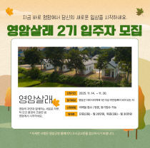 전남 영암군이 이달 30일까지 두 지역 살아보기 체류형 정착 유도 프로그램인 '영암살래? 영암살래!' 2기 참가자를 모집한다. 체류형 정착 유도 프로그램인 영암살래는, 군서면 모정마을에 마련된 5세대 규모의 단독주택 '영암살래'에서 한 달간 거주하며 귀농·귀촌을 체험하..