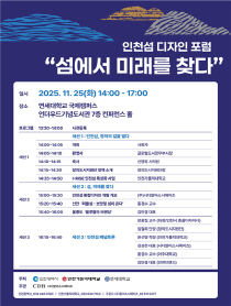 인천시는 11월 25일 연세대학교 국제캠퍼스에서 '섬에서 미래를 찾다'를 주제로 『인천섬 디자인 포럼』을 개최한다고 밝혔다. 이번 포럼은 인천 도서지역이 가진 정체성과 고유한 자원을 바탕으로 미래 디자인 전략을 모색하고 지역 발전의 새로운 가능성을 탐색하기 위해 마련됐..