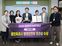 용인특례시(시장 이상일)는 25일 탄소 중립 실현에 앞장서 '2026 대한민국 녹색기후상 자치 부문'에서 행정안전부장관상을 수상했다고 26일 밝혔다. 이날 행사는 16회를 맞는 국회 기후변화 포럼 주최로 범국민적 기후위기 대응과 탄소중립 실현에 기여한 단체와 개인을 선..