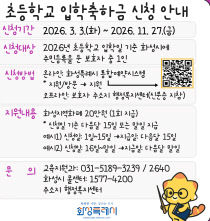 화성특례시(시장 정명근)는 2026 학년도 초등학교 입학생에게 '입학 축하금 지원사업'을 시행한다고 3일 밝혔다. 이번 사업은 초등학교 입학생 자녀 가정에 경제적 부담을 덜어 주고 보편적 교육복지 실현을 위해 대안학교 입학생을 포함 입학일 기준 시에 주민등록을 두고 있..