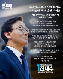 2026-04-09 전재수, 민주당 부산시장 후보 확정..."해양수도 완성에 박차" 해양수산부의 부산 이전을 이끌었던 경험을 바탕으로 해양수도 부산을 결과로 증명하고 대한민국 대도약을 이끌겠다는 포부를 밝혔다. 더불어민주당 전재수 부산시장 후보는 9일 민주당 부산시장 후보로 최종 확정된 직후 개인 SNS를 통해 수락 메시지를 전하며 본격적인 선거 행보..