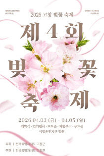 전북특별자치도 고창군의 대표 봄 축제인 '제4회 고창 벚꽃축제'가 오는 4월 3일부터 5일까지 3일간 고창 석정지구 일원에서 열린다. '봄, 봄, 봄'을 주제로 열리는 이번 축제는 벚꽃이 만개한 석정지구 일대를 배경으로 공연과 체험, 미식, 야경이 어우러진 봄맞이 축제..