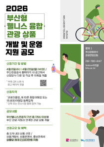 2026-04-11 부산시, 웰니스 융합 관광 공모...체험형 콘텐츠 고도화 부산시가 부산만의 특색 있는 웰니스 자원을 활용해 세계 시장에서 경쟁할 수 있는 고품격 체험형 융합 관광상품 개발에 나선다. 부산시와 부산관광공사는 글로벌 관광 트렌드 변화에 맞춰 '부산형 웰니스 융합 관광상품 개발 및 운영 지원' 공모를 4월 20일까지 진행한다고 1..