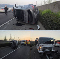 2026-04-11 남해2지선 서부산IC 인근 4중 추돌 사고...운전자 3명 병원 이송 퇴근 시간대 부산 남해2지선 고속도로에서 마이티 화물차가 옆으로 넘어지며 차량 4대가 잇따라 추돌해 3명이 다쳤다. 4월 10일 오후 6시 15분경 남해2지선 고속도로 부산 방향 서부산IC 인근 4차로에서 마이티 화물차가 앞서가던 승용차를 추돌한 뒤 왼쪽으로 전도되는..