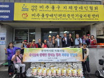 사단법인 인천지체장애인협회 미추홀지회가 지난 25일 한국마사회 인천미추홀지사로 부터 쌀 250포를 후원받았다, 이번 후원된 쌀4kg 250포(4백만원 상당)는 추석 명절 전 미추홀구 관내 소외계층 가정과 중증 장애인 가정에 전달될 예정이다, 한국마사회 인천미추홀지사는..
