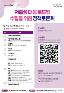 부산시의회 복지환경위원회가 오는 30일 오후 3시 시의회 대회의실에서 '저출생 대응 로드맵 수립을 위한 정책토론회'를 개최한다. 이번 정책토론회는 5년마다 저출산 종합계획을 수립·시행하도록 규정한 조례에 따라 진행된다. 현재 관련 연구용역을 맡아 진행 중인 부산여성가족..