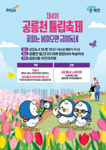 파주시 금촌2동 주민자치회는 18일 공릉천 칠간다리 아래 광장에서 '제4회 공릉천 튤립축제'를 개최한다. '꽃 피는 봄이오면 금이동네'라는 주제로 열리는 이번 축제는 공릉천에 조성된 튤립꽃밭의 아름다움을 알리고, 하천 생태계 복원의 중요성을 시민들에게 전하기 위해 마련..