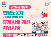 성남시가 현장 노동자의 휴게권 보장 지원사업을 추가 모집해 노동환경 전반을 개선한다고 13일 밝혔다. 시는 민간 분야 현장노동자의 열악한 휴게 환경을 개선하기 위해 '휴게시설 개선 지원사업'을 13일부터 30일까지 추가 모집한다. 이번 모집은 2월 1차 공모에 이어 기..