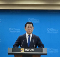 김영록 전남도지사가 3일 브리핑룸에서 12·3 불법 비상계엄 저지 1년 담화문을 발표했다. 김영록 지사는 "절체절명의 벼랑 끝에 섰던 대한민국을 지켜낸 위대한 도민의 승리를 가슴 깊이 새긴다. 그날의 승리 위에 전라남도와 국민주권정부, 그리고 진짜 대한민국이 우뚝 서..