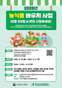 경남 남해군은 지역 농가의 유통 경쟁력 강화와 소득 증대를 위해 2026년 유통지원분야 보조사업 신청을 받는다. 이번 보조사업은 소규모 저온저장시설 지원사업과 통합브랜드 포장재 지원사업, GAP 인증 농산물 포장재 지원사업 등 3개 사업으로 추진된다. 각 사업별로 지원..