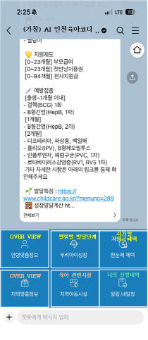 인천시는 가정에서 영유아를 양육하는 부모들이 육아 정보를 보다 쉽고 편리하게 이용할 수 있도록 (가칭)'인공지능(AI) 인천육아코디' 챗봇 서비스를 추진한다고 25일 밝혔다. 이번 서비스는 가정양육 영유아 부모를 대상으로 발달단계별 성장 정보부터 각종 지원금, 지역별..