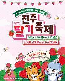 경남 진주시는 '2026 진주딸기축제'를 4월 10일부터 12일까지 3일간 진서중·고등학교와 수곡면 일원에서 연다고 26일 밝혔다. 이번 축제는 진주딸기축제추진위원회가 주최하고 진주시가 후원한다. 진주 딸기 우수성을 알리고 브랜드 가치를 높여 지역경제 활성화로 잇기 위..