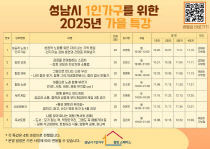 성남시(시장 신상진)는 20일부터 12월 29일까지 1인 가구를 대상으로 삶의 질을 높이기 위한 힐링 스페이스 특강을 개최한다고 15일 밝혔다. 이번 특강은 문화·정서·예술 등의 분야에서 1인 가구의 자기 계발 역량을 높이고, 사회적 관계망 확대를 지원하기 위해 마련된..