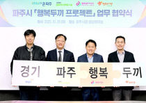 파주시는 ㈔딜로이트한마음나눔, 행복나래㈜, 행복도시락 사회적협동조합과 함께 결식 우려가 있는 외국인 노동자 자녀 지원을 위한 '행복두끼 프로젝트' 업무협약을 체결했다고 밝혔다. 이날 협약식에는 최병갑 파주시 부시장을 비롯해 ㈔딜로이트한마음나눔 유병문 상임이사, 행복나래..