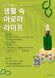 김포시 양곡도서관은 청소년의 스트레스 관리교육을 지원하기 위해 '생활 속 아로마 라이프' 프로그램을 운영한다. 이번 프로그램은 11월 15일과 12월 6일 오전 11시부터 12시 30분까지 2회에 걸쳐 진행되며, 아로마 오일 체험과 직접 룸 스프레이를 만드는 활동 등으..