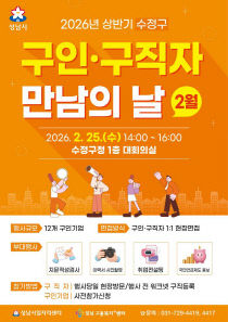 성남시가 올해 채무 제로 선언에 힘입어 지역 기업의 인력난 해소를 위해 25일 오후 2시부터 4시까지 수정구청 1층 대회의실에서 '구인·구직자 만남의 날' 행사를 개최한다고 19일 밝혔다. 이번 행사는 관내 12개 기업이 참여해 다양한 직종을 대상으로 구직자와 1대1..