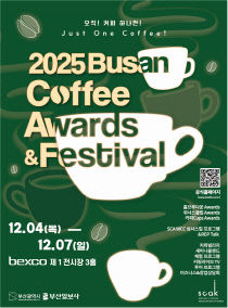 2025-12-04 "커피도시 부산 확장" 시, 벡스코서 커피어워즈·페스티벌 개최 부산시가 커피 산업 확장과 문화 교류를 위한 대규모 커피 축제를 오늘부터 벡스코에서 개최한다. 부산시는 4일부터 7일까지 4일간 벡스코 제1전시장에서 '2025 부산 커피어워즈&페스티벌(2025 BCAFE)'을 개최한다고 밝혔다. 이번 행사는 지역 로스터리 카페 등 커..