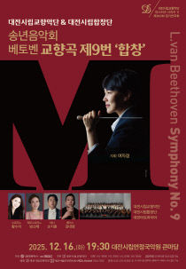 대전시립교향악단은 오는 16일 대전시립연정국악원 큰마당에서 마스터즈시리즈 11 송년음악회로 베토벤 교향곡 제9번 '합창'을 선보인다고 밝혔다. 이번 공연은 대전시립교향악단 예술감독 겸 상임지휘자 여자경의 지휘로 진행되며, 소프라노 황수미, 메조소프라노 방신제, 테너 손..