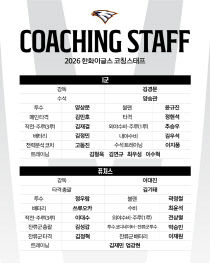 한화이글스는 15일 2026시즌 코칭스태프 보직을 확정했다. 김경문 감독이 이끄는 한화이글스 1군 코칭스태프는 지난 시즌과 같은 보직으로 시즌 준비에 나선다. 수석 양승관 코치를 비롯해 투수 양상문, 불펜 윤규진, 타격 김민호, 정현석, 1루 작전 추승우, 3루 주루..