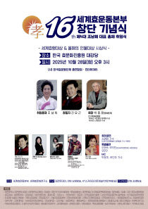 세계효운동본부(이사장 진요근)는 10월28일 오후 3시 한국효문화진흥원 대강당에서 세계효운동본부 창단 16주년 기념식 및 제4대 조남희 대표총재 취임식과 제1회 박종윤 세계효행대상 시상식과 2025년 올해의 인물 최고대상 시상식을 갖는다. 제1회 박종윤 세계효행대상 수..