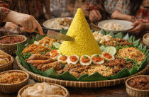 노란 쌀밥이 산처럼 높이 쌓이고, 그 주변을 다양한 반찬이 둥글게 둘러싼 음식. 인도네시아의 전통 음식 나시 뚬펭(Nasi Tumpeng)은 단순한 한 끼를 넘어 감사와 연대, 축복의 의미를 담아 함께 나누는 상징적인 식문화다. 뚬펭의 가장 큰 특징인 원뿔 모양의 밥은..