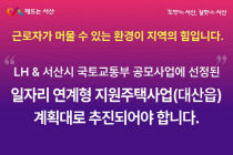 한국토지주택공사(LH)가 추진해 온 '서산시 대산읍 일자리 연계형 지원주택 사업'의 중단 결정에 대해 서산 시민들이 강하게 반발하며, SNS를 통한 집단 행동에 나섰다. 서산시민들은 "약속은 지켜져야 한다"는 메시지를 내걸고, 사업 정상화를 촉구하는 릴레이형 SNS 챌..