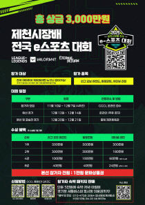 제천시가 오는 12월 20일 제천체육관에서 '제3회 제천시장배 전국 e-스포츠대회'를 개최한다. 전국 단위 아마추어 대회로 자리 잡은 이번 대회는 3000만 원의 상금 규모와 다양한 종목 구성으로 역대 최대 규모의 열기를 예고하고 있다. 올해 대회는 ▲리그 오브 레전드..
