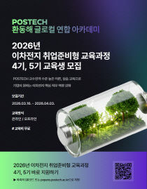 포스텍 환동해 글로컬 연합 아카데미는 2026년 이차전지 취업준비형 교육과정 4, 5기 교육생을 모집한다. 모집기한은 4월 3일까지다. 환동해 글로컬 연합 아카데미는 기업·대학·시민이 함께 구축하는 지식 생태계를 기반으로 산업 수요 맞춤형 교육을 제공하는 포스텍의 교육..