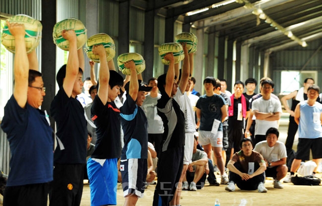 대전지역 환경사원 채용에 응시한 20-30대가 66%를 넘어서는 현상이 발생해 젊은층의 취업난이 얼마나 심각한지를 보여주는 듯 하다. 환경사원 지원자들이 25일 대전체고에서 모래주머니 오래들기 시험을 치루고 있다./이민희 기자