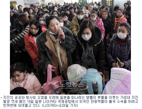 일본 후쿠시마 원전에서 방사성 물질이 유출되는 등 원전 공포가 확산되자 일본 시민들이 피난길에 오르고 외국인들도 일본을 속속 떠나는 등 일본판 엑소더스가 현실화되고 있다.