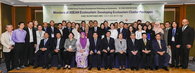 (서울=연합뉴스) 8일 서울 소공동 롯데호텔에서 '아세안 에코투어리즘의 매력: 다국가 관광 패키지 개발'을 주제로 열린 '한-아세안 관광진흥 워크숍'에서 참석자들이 기념촬영을 하고 있다. 2016.6.8 [한-아세안센터 제공]