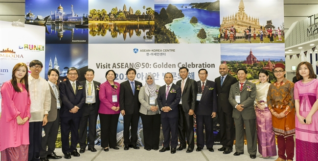 (서울=연합뉴스) 한-아세안 센터는 9일 서울 삼성동 코엑스에서 개최된 제31회 한국국제관광전에서 '2017 아세안 방문의 해' 선포식을 개최했다. 선포식에는 김영선 한-아세안센터 사무총장, 마스 에르미에야티 삼수딘 말레이시아 관광문화부부 장관, 베니토 벵존 주니어 필리핀 관광차관 등이 참석했다. 2016.6.9