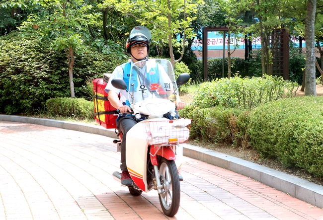 오토바이 타고 이동하는 집배원