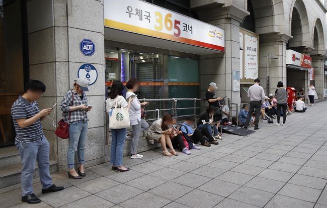 (서울=연합뉴스) 김인철 기자 = 문재인 대통령 취임 100일인 17일 오전 서울 종로구 광화문우체국에서 시민들이 문 대통령 취임 기념 우표를 구입하기 위해 이른 아침부터 줄을 서고 있다. 2017.8.17