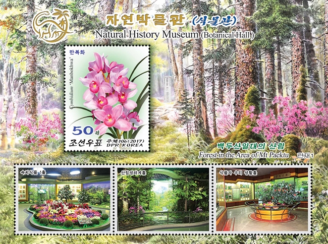(평양 조선중앙통신=연합뉴스) 북한이 자연박물관을 소개하는 새 우표들(소형전지 5종)과 조선의 국화, 국조, 국견, 국수인 목란, 참매, 풍산개, 소나무를 반영한 개별우표 4종을 발행했다고 조선중앙통신이 17일 보도했다. 2017.8.17